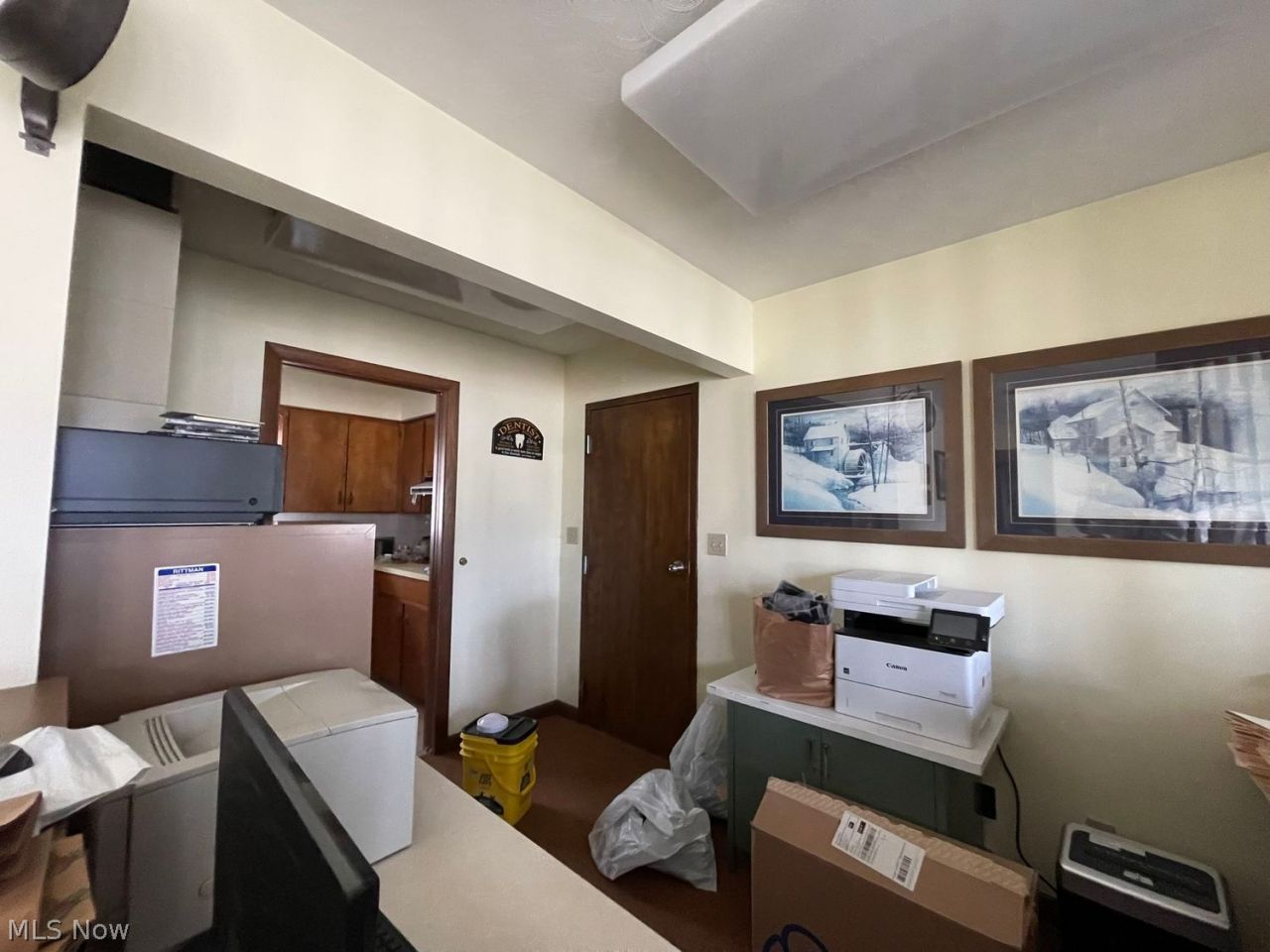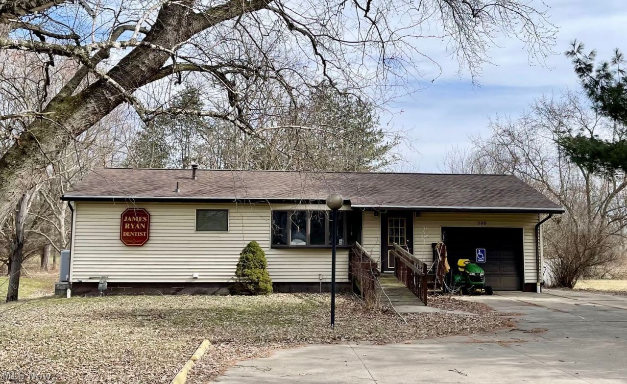 Opportunity awaits with this versatile commercial property, previously used as a dental office and being offered with the existing equipment in place. This freestanding building with a new roof (2025) and attached garage provides an excellent setup for a dental practice or a variety of professional office uses. The layout includes a small lobby with coat closet leading into a waiting room and front reception desk area. The space features a restroom, two exam rooms, a dedicated X ray room, and a kitchen area. There is an additional small office or workspace room with a desk. The building also includes a full basement for storage or additional workspace. The property can be reestablished as a dental office or easily adapted to suit many different business or office needs. The exterior offers ample parking with additional parking available behind the building, providing convenience for clients and staff.